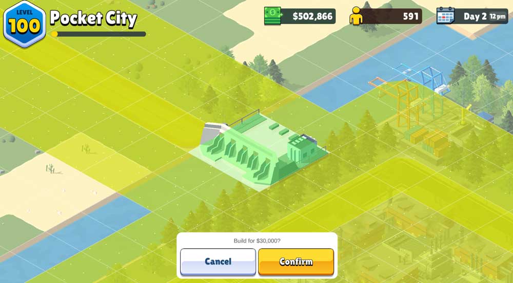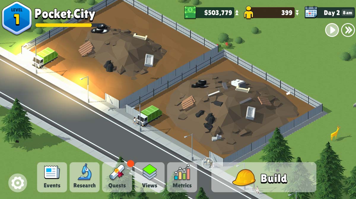 Pocket City 2 will have new buildings of course, and certain ones will have new gameplay mechanics too. The landfill, for example, keeps your city garbage-free but cannot be demolished. However, it can eventually be converted into a park with the right research.